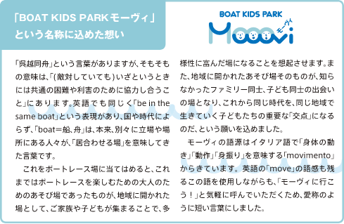 ボートレースは、娯楽であると同時にスポーツでもあります。わたしたちは「運動」という言葉がもつ本来の意味に立ち返り、ボーネルンドの考えに大きく共感しました。