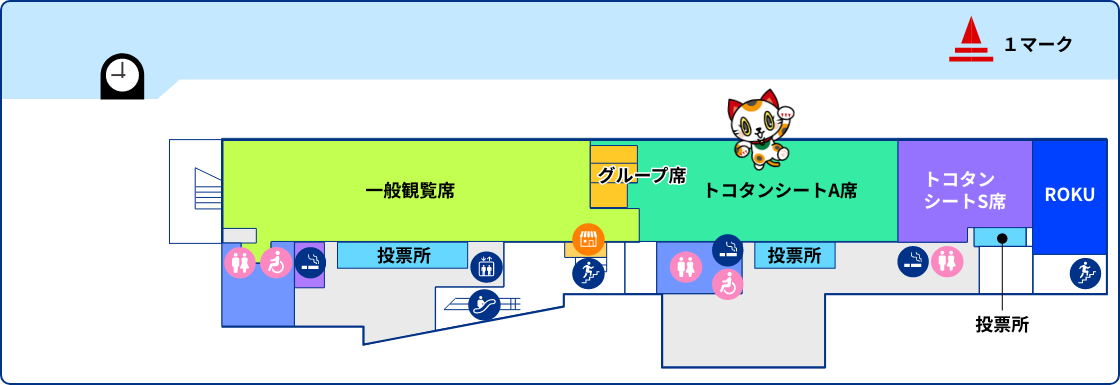 ボートレースとこなめの迫力のレースを、天候や気温などを気にせず、 ゆったり存分にお楽しみいただける快適エリアをご紹介します。 入場券は2F指定席エリア前売発券機及びインターネット予約にてお求めください。 ※電子マネーチャージは有料入場者のみとし、当日限りとなります。 また、ご本人様名義のTOKOCA(キャッシュレスカード)にのみのチャージとなります。 ※一度ご予約いただいた有料席については、変更及びキャンセルは不可となります。 ※20歳未満およびお子様連れのお客様はご入場できません。 ※利用時間はとこなめ12レース終了までです。他場レース放映はとこなめ12レース終了までとさせていただきます。