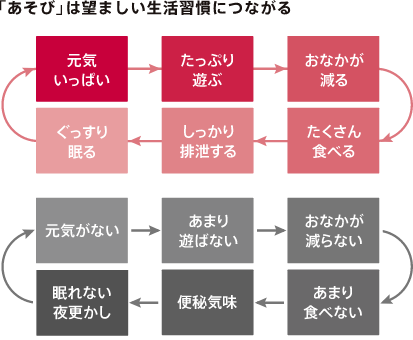 「あそび」は"やってみたい"という、湧き上がる衝動から始まる自発的な活動です。 だからこそ、子どもたちは生き生きと取り組み、追求するのです。その過程で、健やかな身体、創意工夫をする力、失敗にくじけず挑戦する力、自尊心、とりまく世界や他者への関心など、さまざまな「生きる力」が育ちます。 まさに「あそぶことは生きること」なのです。