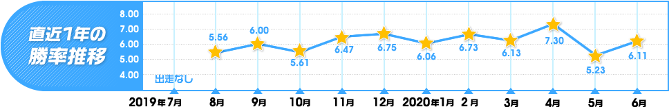ついに地元水面で優勝を果たした大瀧は残り半年間も優出を量産し、優勝数も伸ばしていくだろう。今の勢いであればG1初優勝も目前だ!