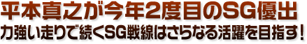 SGの準優勝戦とあって、1号艇にはSGタイトルホルダーの宮地元輝、2号艇にはSG8V、勝率も7点台後半をマークしている毒島誠などかなりの強者が集結。その中で平本は、まずまずのスタートから1周1マークをまくり差し、バックストレッチで2番手を追走。しかし続く1周2マークの攻防では内を差した毒島の艇と接触。転覆の危機が迫るもなんとかこらえた平本は、その後も3番手を追走する3号艇・佐藤翼を振り切り2着でゴールイン。3月戸田に続き今年2度目のSG優出を決めた。転覆危機のアクシデントがあってもこの結果が出せたのは、SG優出への強い執念があってのものだろう。