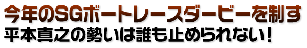 今年の平本はSG・G1レースで数多く優勝戦へ進出し、また8月にはゴールデンレーサー賞を受賞するなど勢いが止まらない。この勢いで初の黄金ヘルメット獲得だ!