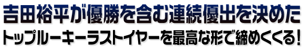 フレッシュルーキーを2年、トップルーキーを2年務めた吉田裕平が、ラストとなる12月で連続優出を成し遂げた。そのうち、とこなめでは優勝を飾り、デビュー初出場の水面に恩返しした。