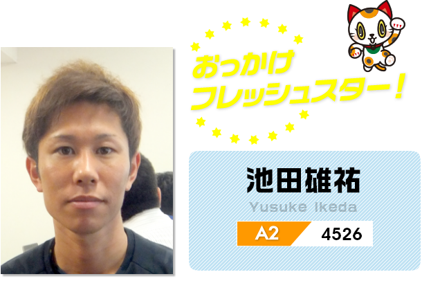 愛知支部には苗字「池田」選手が2選手在籍している。1人目はとこなめの大スター・池田浩二、もう1人が池田雄祐だ。池田雄は2008年のデビューから2016年までA級に昇格できなかったが、2017年前期で初のA2級へ昇格。F2の時期があったものの、2019年後期にはA1級まで上り詰めた。しかしA1級キープはできず、A2級での生活が続いた。そんな池田雄だが、2023年審査期間の成績は勝率6.41と自己最高勝率を残してA1級へ返り咲いた。その勢いは未だ衰える気配は見せていない。なぜならば9月の三国から11月末の蒲郡まで一般戦6節に出場したが、全てのレースで予選突破を果たしている。また10月の福岡から4節連続で優勝戦進出と成績を残しているためだ。この好調の波を象徴するかのようなうれしいサプライズが用意されていた。それは浜名湖G1東海地区選手権にあっせんされたことである。前回のA1級ではG1あっせんがなかったが、ようやくG1の舞台に参戦できるのだ。