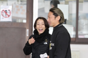 女子戦でいつも気になっているのが大滝明日香の来ているジャンパー。黒地に黄色い星がプリントされている。北海道出身の自分は、サッポロビールを愛してやまない。完全にサッポロビールのマークだよな?と思い聞いてみると「愛してやまないんですか(笑)。サッポロビールですよ。」とそのまさかだった。「かっこいいから西村みっちゃん(西村美智子)にお願いしてもらったんです。後ろに描いてある言葉も好き!」。そこに書いてある言葉は〝丸くなるな!星になれ。〟「いい言葉ですよね」とお気に入りとなっている。ちなみにお酒は?と聞いてみると「全然飲めません。真っ赤になってします」と笑っていた。