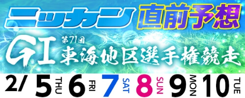 前検日時点で蒲郡SGクラシックの4番目の予備選手となっているが、今節優勝を飾り自力でのSG出場を決めたいところだ。7R ❺―❶=全